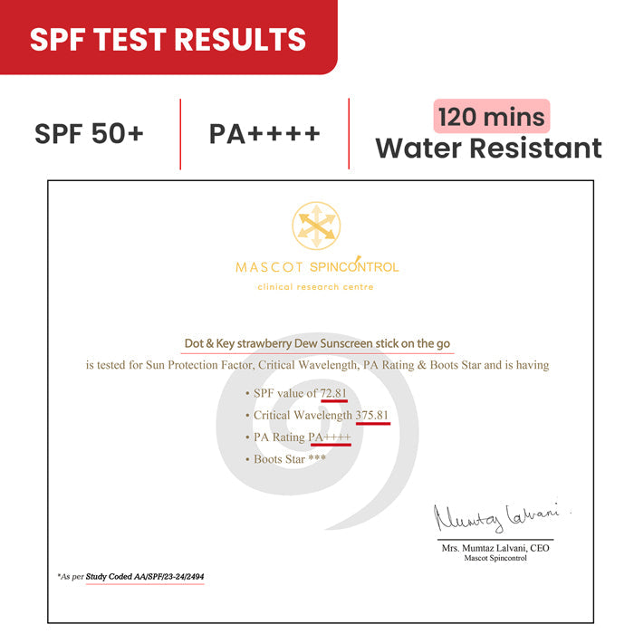 Dot & Key Strawberry Dew Sunscreen Stick SPF 50+ PA++++ is a lightweight, portable sun protection stick designed for smooth, mess-free application. The formula glides effortlessly on the skin, creating a comfortable protective layer that shields against both UVA and UVB exposure. Its non-greasy texture makes it ideal for reapplication throughout the day, even over makeup, providing convenience for outdoor activities and daily use.