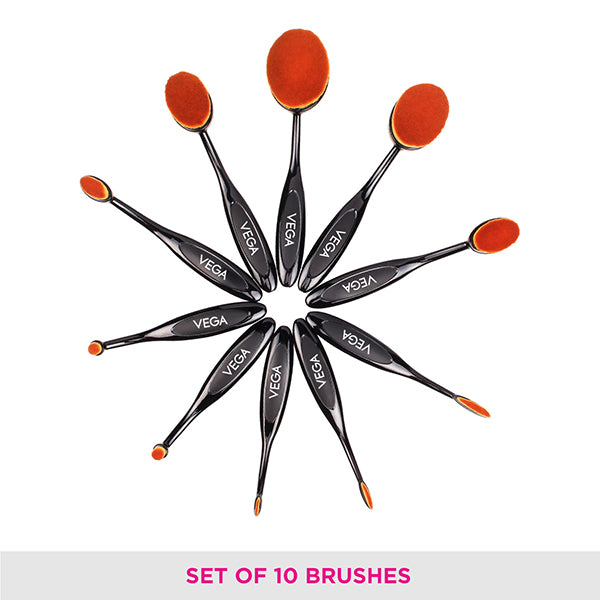 Vega Pro EZ Set of 10 Professional Make-Up Brushes - MBS-10