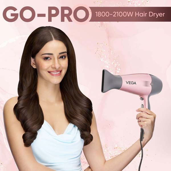 Vega Go-Pro 2100W Hair Dryer is perfectly designed to achieve salon-quality blowouts right in your home and on the go! Its powerful 18002100W power offers fast and efficient drying and styling results. Featuring 2 speed and 3 heat settings, it allows you to easily customize airflow and temperature based on your hair type and styling needs. The Detachable Concentrator Nozzle ensures precision styling, while the Cool Shot Button helps you to set your hairstyle with a lasting finish. Also designed for safety, it includes an Automatic Overheat Cut-Out for appliance safety. Additional features if the travel-friendly dryer include a Removable End Cap for easy cleaning, Thermal Protection for scalp protection and Ergonomic Design for easy handling.