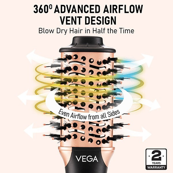 Vega LitStyle L3 Volumizer Hair Dryer Brush is the perfect hairstyling appliance to dry and style hair in one step. This compact hair dryer brush features a unique 360° Advanced Airflow Vent Design that offers even airflow from all sides, allowing you to blow dry hair in half the time. Its Ceramic Coated Styling Surface offers even heat distribution while the 3 Heat/2 Speed Settings assures maximum usage versatility for smooth, frizz-free results in one go. You can use the Rotary Knob to choose between the 3 speed settings (III for Hot Air & High Speed, II for Warm Air & Medium Speed and I for Normal Air & High Speed) to suit your hair type and styling needs. Additional features include Flexible Tangle-Free Bristles with Smooth Ball Tips, Anti-Scald Technology for scalp protection, Lightweight and Ergonomic Design for comfortable use and 360° Swivel Power Cord for tangle-free use.