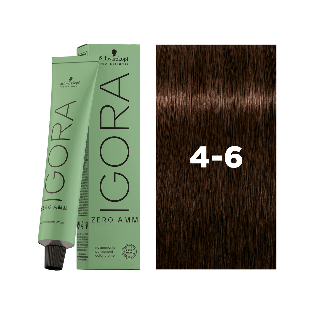 100% free from ammonia, Schwarzkopf Professional Igora ZERO AMM 4-6 Medium Brown Chocolate is a permanent hair colour creme that can be used for all colour techniques, with zero compromise! The ammonia-free formula features Phytolipid Technology, specific pigment mixes and a blend of natural micronised oils, which seal in colour pigments for long-lasting, natural, true-to-tone colour results without the unpleasant ammonia odour.