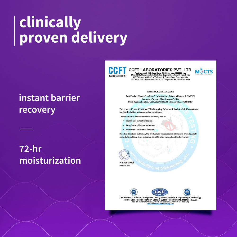What It Does: Experience instant barrier repair and long-lasting hydration with Plum CeraSense™ Moisturizing Cream. Formulated with ceramides and peptides, this cream deeply nourishes the skin, providing up to 72 hours of moisture retention. Dermatologically tested, it helps restore the skin's natural barrier, leaving it soft, supple, and revitalized.