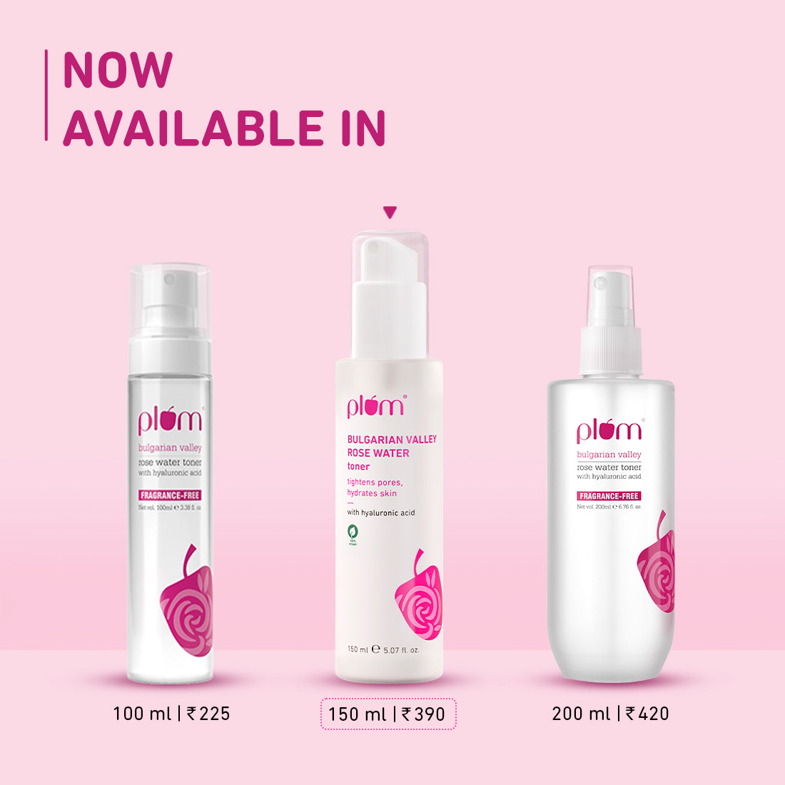 Plum Bulgarian Valley Rose Water Toner for tighter pores | Alcohol-Free Toner | Instantly Hydrates | Soothes & Calms Skin | Tightens Pores | Dermat-Tested, 100ml
