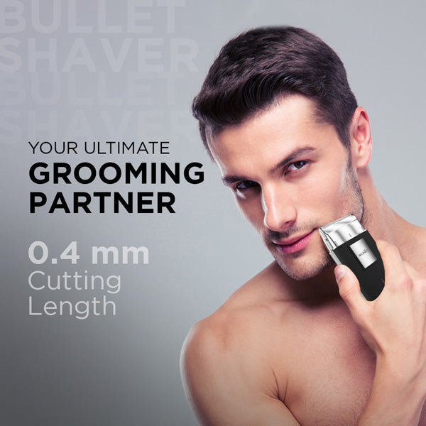 Experience unmatched grooming with the Ikonic Bullet Shaver. Its ergonomic design fits perfectly in your hand, providing precise control and reducing hand fatigue. The powerful motor ensures a smooth, effortless shave, while the 0.4 mm cutting length is ideal for maintaining a well-groomed appearance. With up to 45 minutes of battery life and a compact, portable design, it’s perfect for daily use and travel. Includes a spare foil for extended performance. Enjoy professional-quality grooming anytime, anywhere.