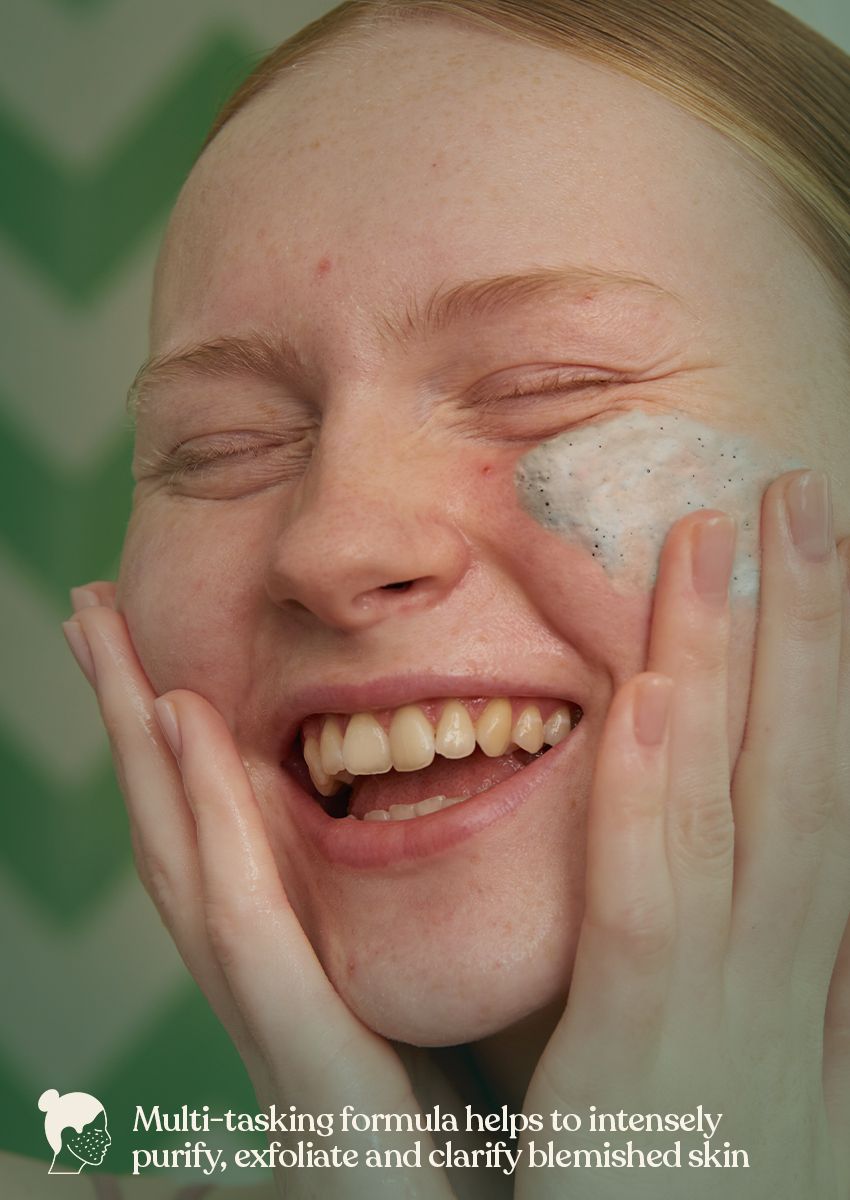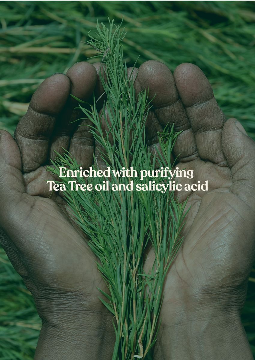 Our clay-based formula is enriched with purifying, Community Fair Trade Tea Tree oil and salicylic acid that helps to visibly reduce the appearance of clogged pores and blemishes. As a Tea Tree face wash, it helps to deeply cleanse your skin. Also functioning as a Tea Tree scrub, it exfoliates your pores and as a Tea Tree mask, it soothes and clarifies blemished skin.