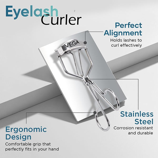 Vega Eye Lash Curler is the finest eyelash curler available to get the desired curls at home. It features a half-rounded curling pad with a smooth opening and closing action, making it easy to use by anyone. The ergonomic design of the eye lash curler provides easy grip and precision curling, to create beautiful curls for parties, work and more in just a few seconds.