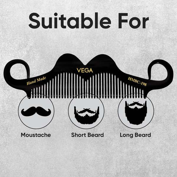 Elevate your moustache and beard grooming with Vega Moustache Comb. Shaped like a moustache and made with cellulose acetate material which creates less static charge, you can use the moustache and beard comb everyday to keep your facial hair detangled and in good shape. You can also use the comb while trimming your facial hair or sideburns and to distribute your favorite balm, oil or wax.
