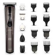 The Ikonic Me 5-in-1 Express Groomer Trimmer is the ultimate grooming tool every man should have. This versatile kit includes five head attachments that allow you to groom from head to toe with ease. Featuring a T-shaped blade, U-shaped blade, detailing blade, shaver, and nose trimmer, it offers comprehensive grooming and styling capabilities. With its multi-functional design, the Ikonic Me 5-in-1 Express Groomer Trimmer efficiently covers more than 10 areas of the body, ensuring you're always prepared for any occasion. The trimmer's ergonomically designed body provides a comfortable and speedy grooming experience. Plus, with a 600mAh battery, 90-minute runtime, and LED display, it delivers reliable performance and consistency, enhancing your grooming routine effortlessly. HOW TO USE Power up: Press the button to switch on Charge up: Ensure the product is fully charged Attach and oil: Fit desired attachment following manual. Keep trimmer oiled timely for longevity