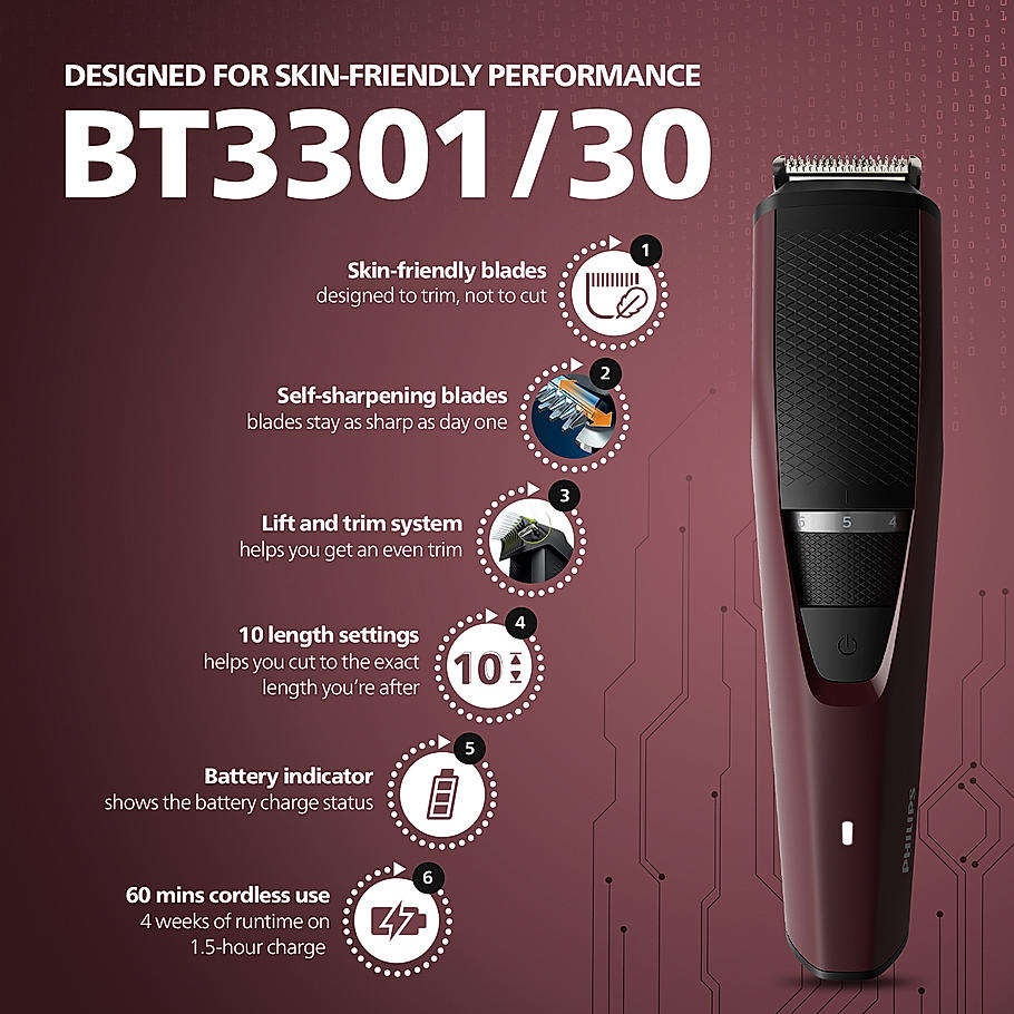 Philips Beard Trimmer- Skin Friendly Beard Trimmer | 10 Length Setting | 60 Minutes Run Time | BT3301/30