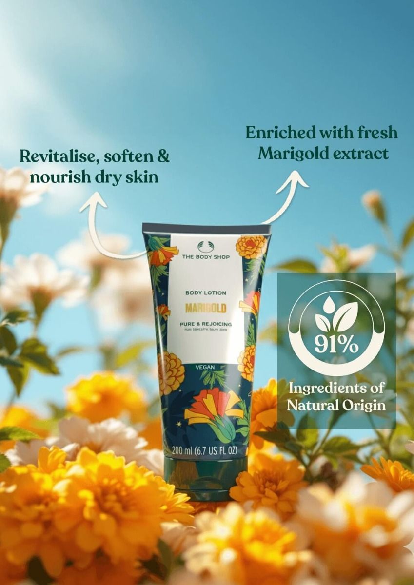 Wrap your skin in the comforting care of our Marigold Body Lotion, leaving it soft, nourished, and rejoicing all day. Made with 91% natural ingredients, it’s vegan, paraben-free, and dermatologically tested, so it feels as gentle as it is effective. A daily dose of hydration with the cheerful touch of marigold—pure care for you and the planet.