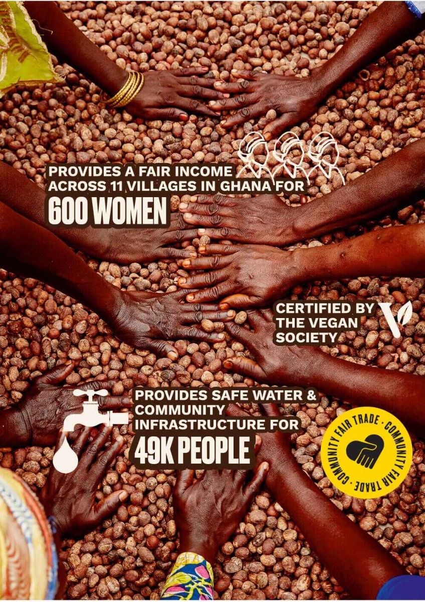 Our intensely creamy shea butter moisturiser comes in recyclable packaging* made with an aluminium lid and 100% recycled plastic tub, including Community Fair Trade recycled plastic from India. This means you can love your planet every time you apply the body butter.