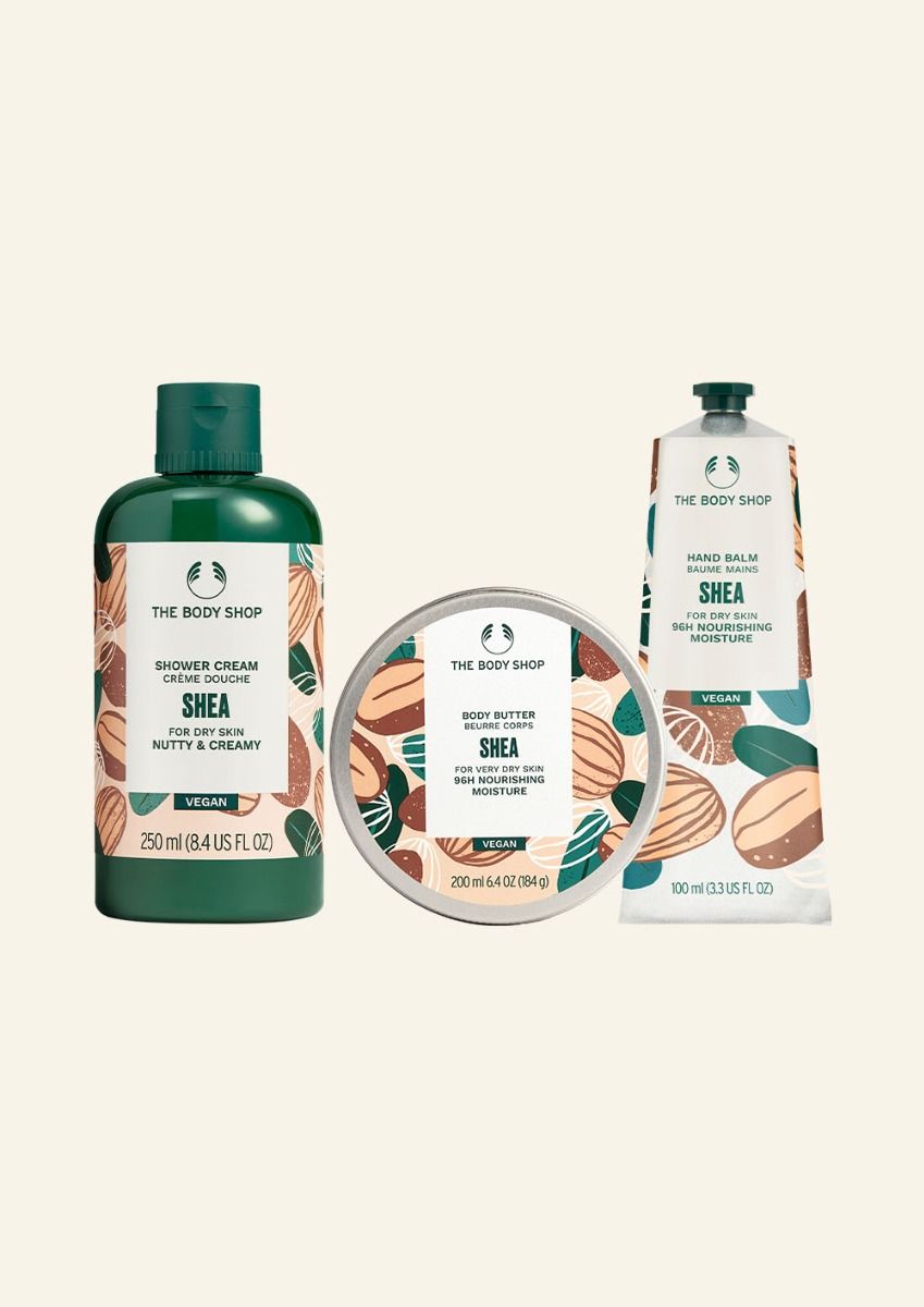 Indulge in the ultimate skin-nourishing experience with our Shea Nourishing Body Care Trio, meticulously crafted to cleanse, hydrate, and protect dry to very dry skin. Begin your routine with the Shea Shower Cream, a soap-free formula that gently lathers into a creamy foam, leaving your skin feeling soft, cleansed, and hydrated. Enriched with 91% ingredients of natural origin, including handcrafted Community Fair Trade shea butter from Ghana, this shower cream is now certified by The Vegan Society. :contentReference[oaicite:0]{index=0}